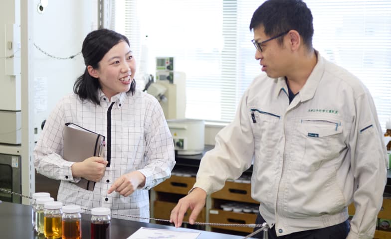 入社してすぐに製品研修があり、製品の基礎知識を身につけた上で、お客様からお困りごと等を伺い、担当研究員に相談しながら対応することを繰り返すことで製品知識を深めていきました。